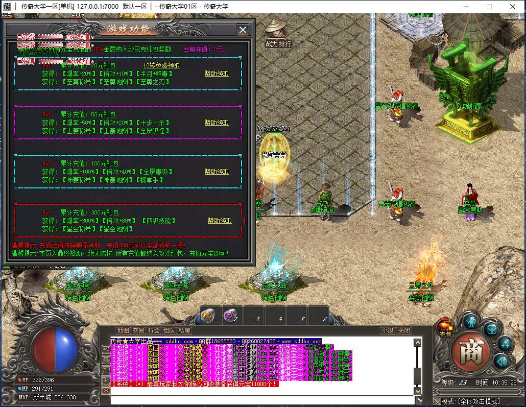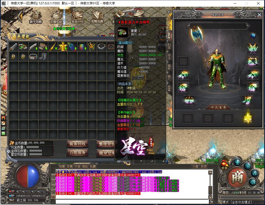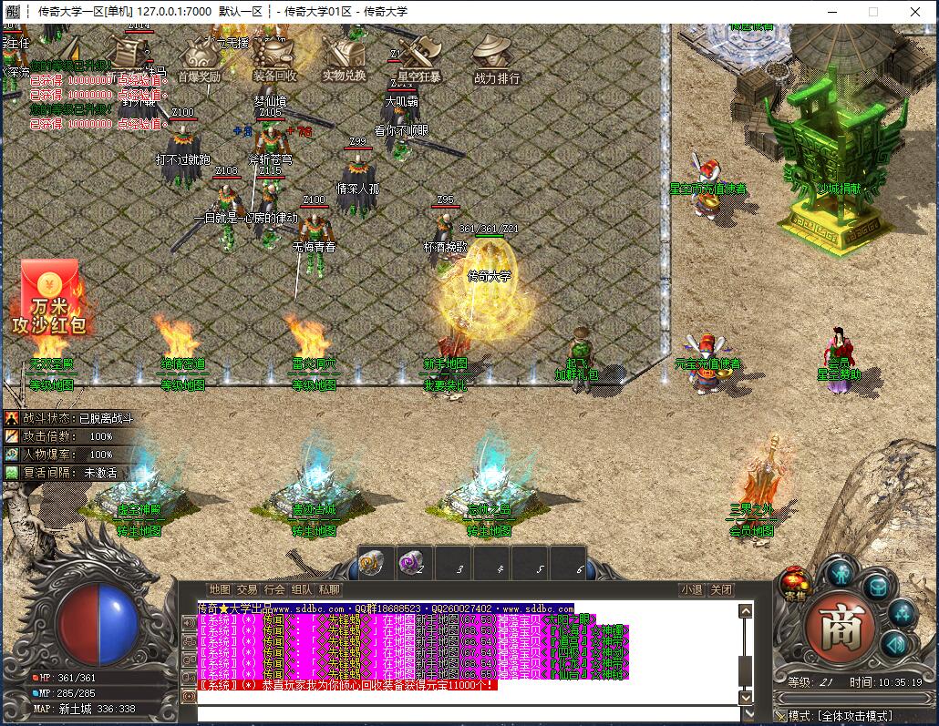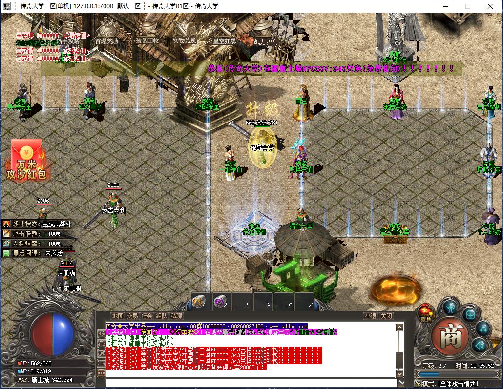 土豪玩家可以充值1000元,共计获得1亿元宝,可将转生点到20转猛的一塌糊涂