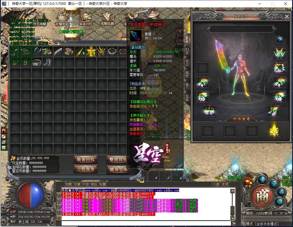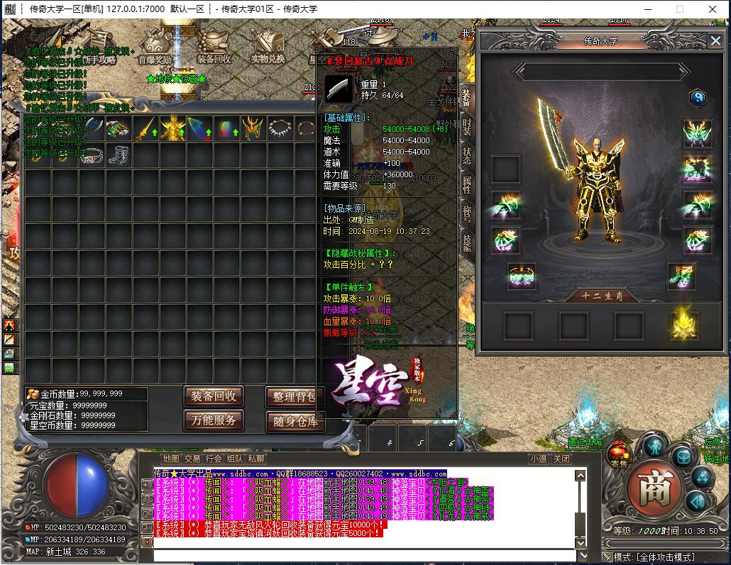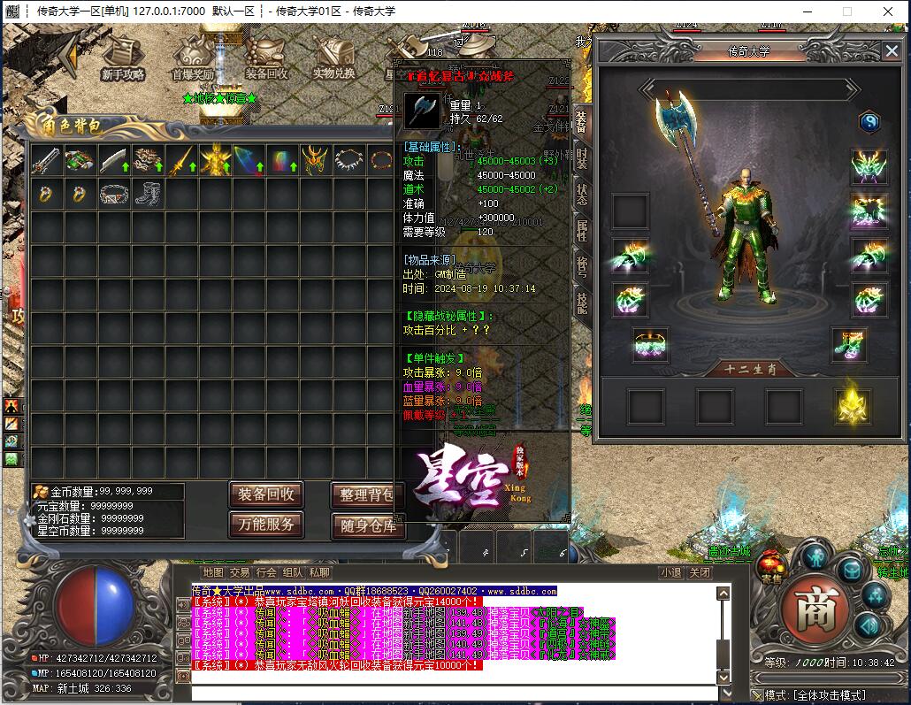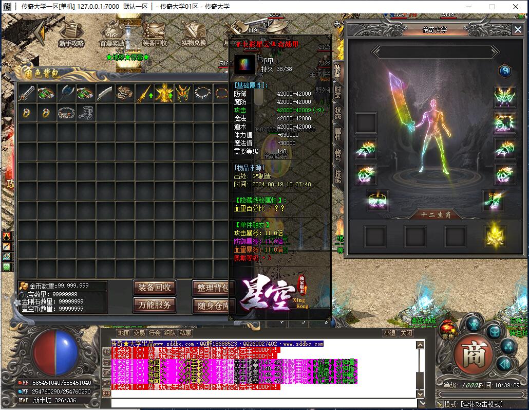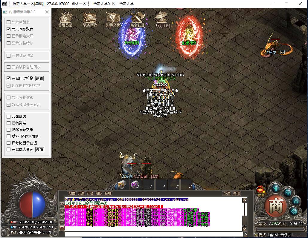 土豪玩家可以充值1000元,共计获得1亿元宝,可将转生点到20转猛的一塌糊涂