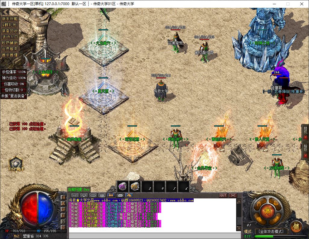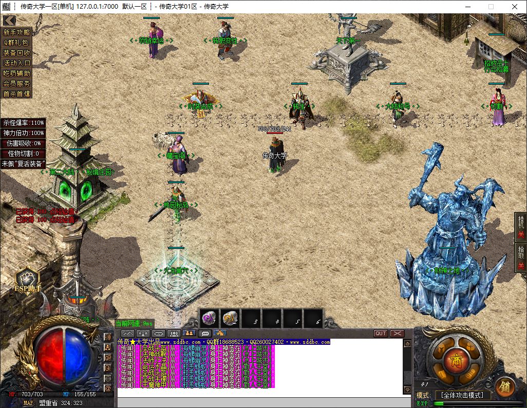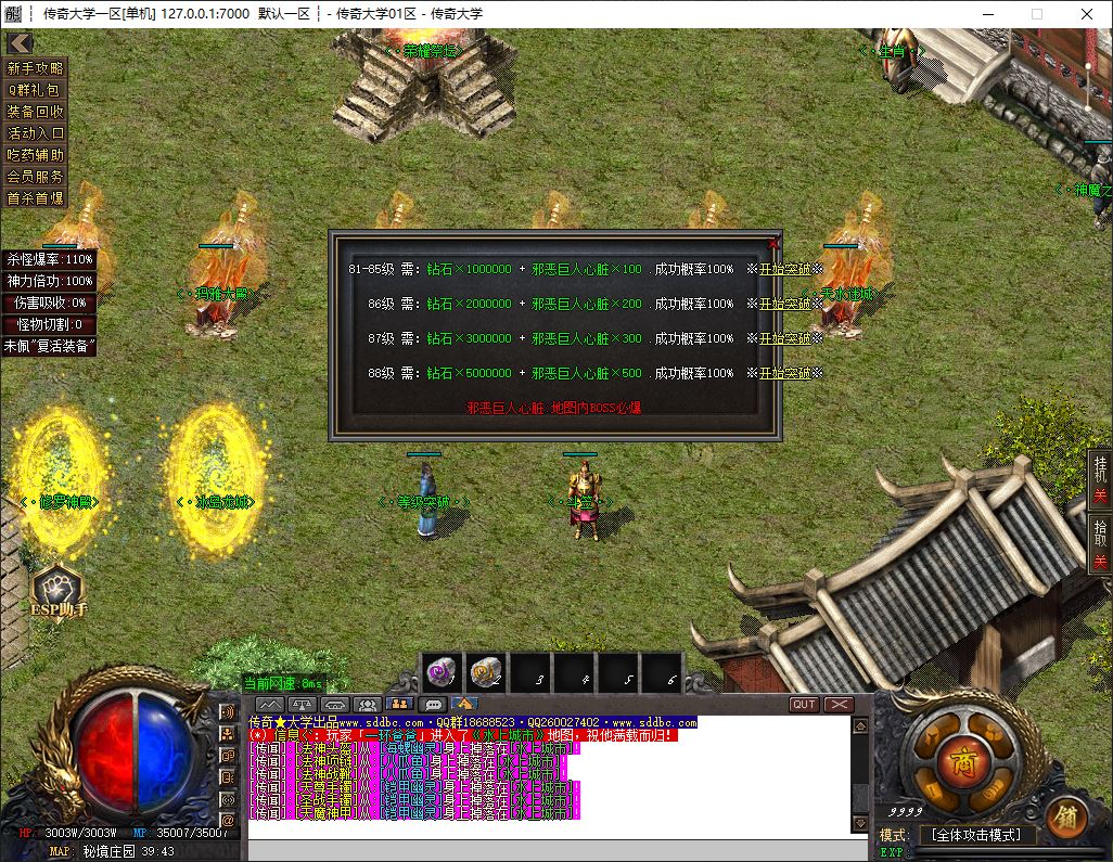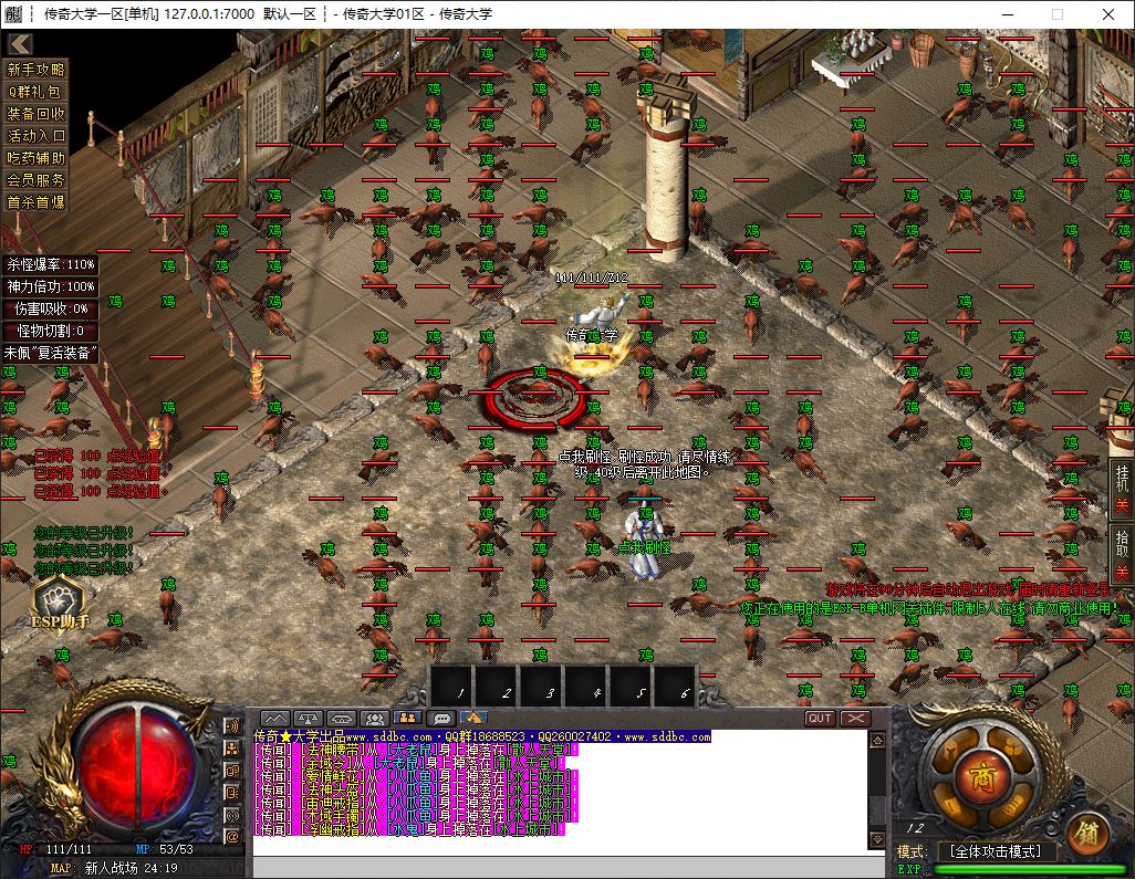 1.兑换Q群礼包:送回血宝石+最新技能书,上线自动激活自动捡物功能