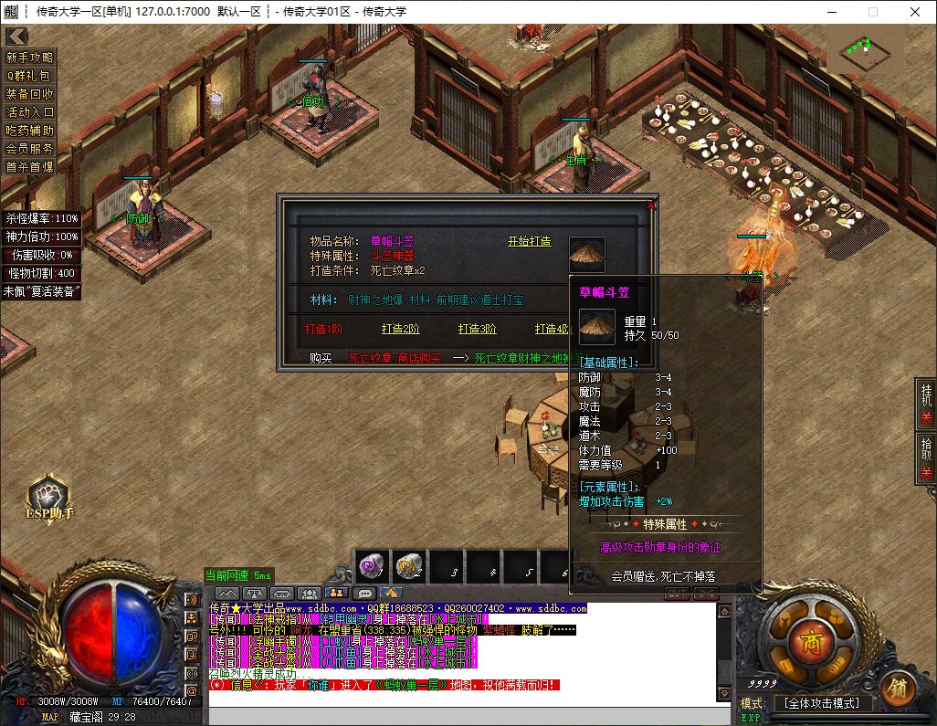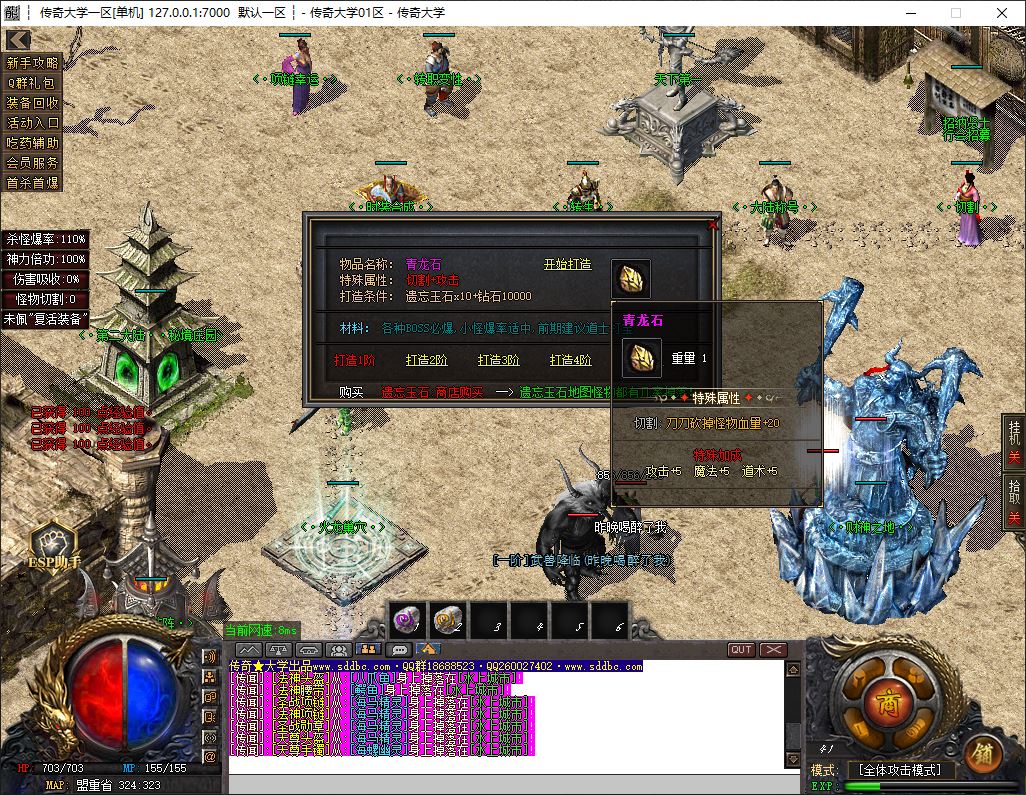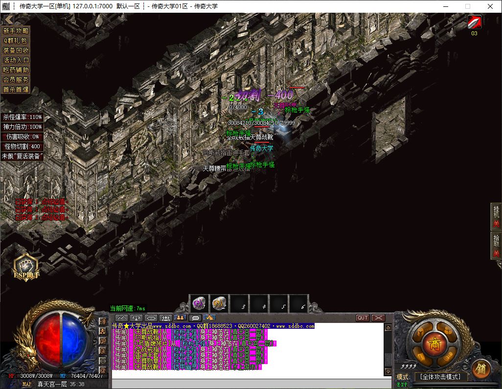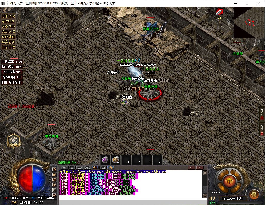 1.兑换Q群礼包:送回血宝石+最新技能书,上线自动激活自动捡物功能