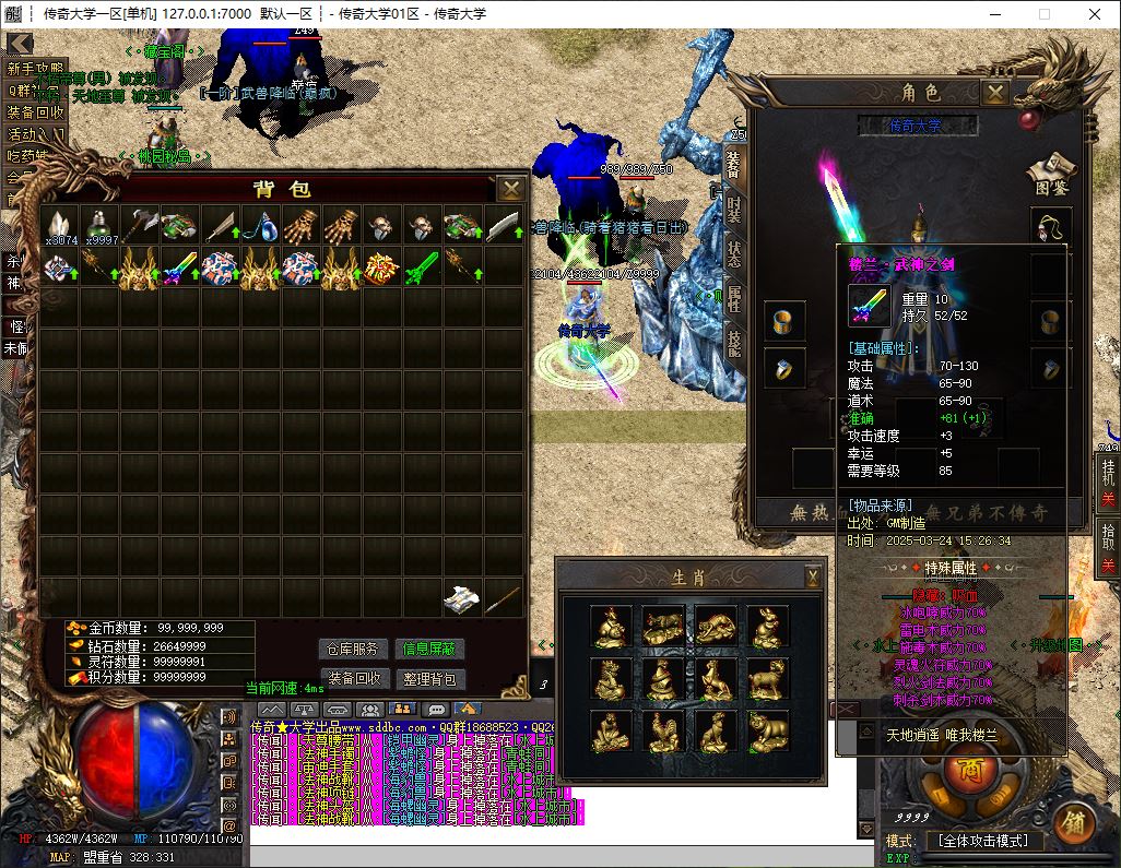 称号系统:增加人物切割+人物生命提升法师道士魔法技能一样切割刀刀切割