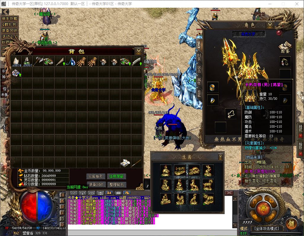 7.重要:生肖增加人物生命,集齐5级生肖套激活防麻痹属性